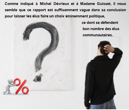 Nous pensons, avec la tenue de dix réunions publiques sur le Pilat rhodanien, avoir fait honnêtement notre travail pédagogique d'information de la population. Peut-on en dire autant de la CCPR qui n'en a tenu aucune et a divulgué le rapport de la Société Espélia aux Conseils municipaux, seulement une dizaine de jours avant la réunion décisionnelle ? !