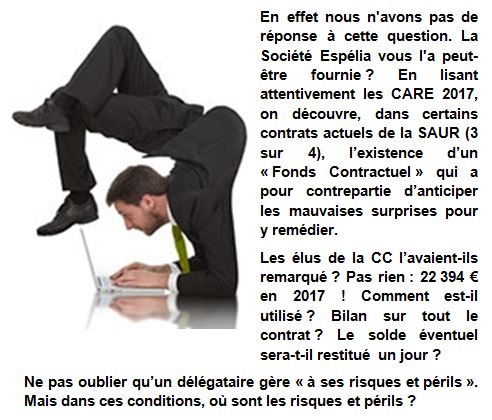 Nous regrettons évidemment le choix qui vient d'être fait le 17 décembre dernier à Pélussin par nos élus communautaires qui ont voté « aux forceps » une gestion déléguée du service public de l'eau potable dans notre Pilat rhodanien. Nous avons par contre apprécié l'accueil de la population locale qui sur les marchés ou par internet a très largement adhéré à la pétition remise ce même jour au Président Georges Bonnard avec 1 011 signatures dont 926 de résidents sur le territoire. Egalement par la cinquantaine de citoyens, venus spontanément pour certains, nous soutenir et porter les pancartes sur lesquelles nous posions une question personnalisée à chaque Conseiller communautaire, à l'entrée de la réunion. Nous attendons toujours leurs réponses, preuve que nos élus n'ont pas su, ou plus grave, n'ont pas voulu entendre nos interrogations sur le rapport de la société Espélia qui comporte pourtant de nombreuses erreurs ou omissions qui font que les dés étaient pipés et que nous avons assisté à une véritable mascarade. Car il est évident que pour plus de 11 000 euros, payés avec nos impôts, un bureau d'études sait « démontrer » ce qu'on lui a demandé de trouver.